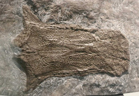 This fish fossil cast is a Stensioella heintzi (named for Erik Stensiö). It was collected Hunsrück, Budenbach, Germany. This fish fossil has only been found in Germany so far. Fossil dates to about 395 million years ago (Early Devonian Period).