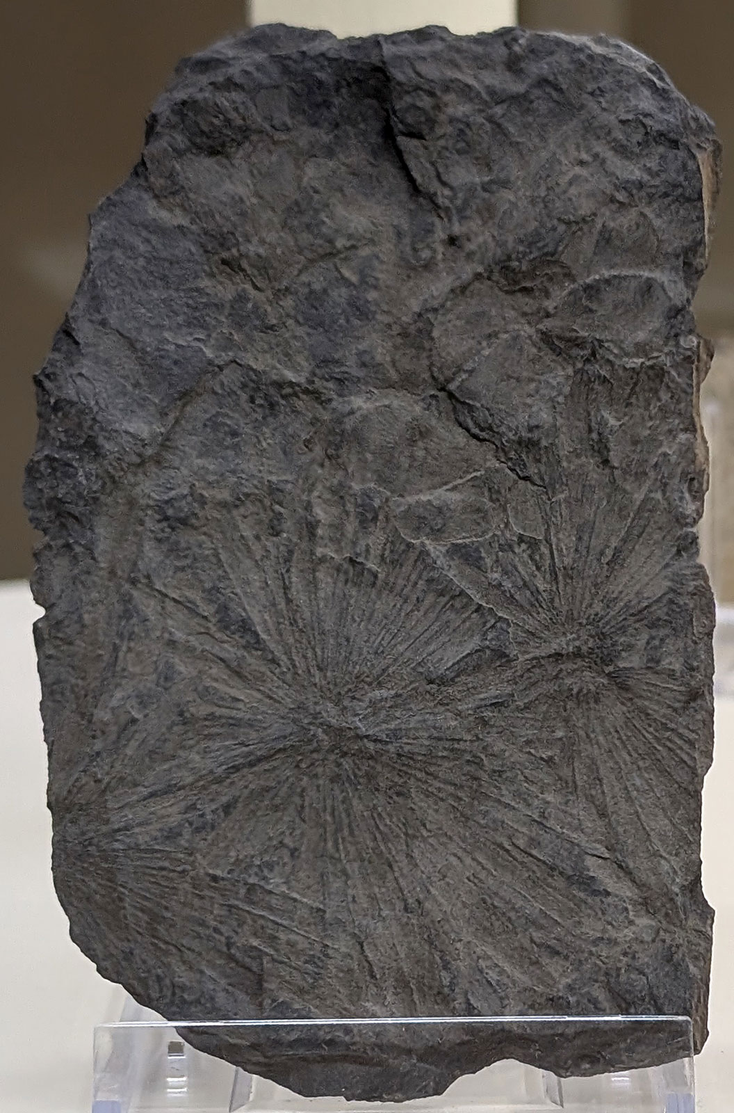 This image is of the Annularia longifolia plant fossil. The plant existed in the Carboniferous Period. Picture taken at Museo di Geologia e Paleontologia Florence Italy (Università degli Studi di Firenze) in August 2024.